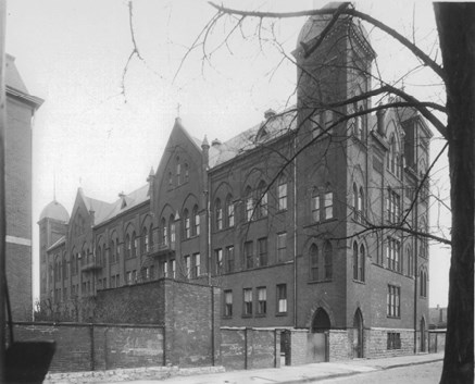 The building which burned dates from 1895 and was the third school building. The first had quickly outgrown its quarters in the combined church-school-rectory built in 1858 as well as a new separate school put up in 1863 between the original church and Broadway. At first this second school housed all classes, but upon completion of the second church in 1886 the girls’ classes were moved into the old church and the boys’ classes remained in the school building. By the mid 1890s the population of the parish had again outgrown the availa-ble school facilities and the demand for a new school was urgently expressed. On April 26, 1895, work was begun on tearing down the old church and then the 1863 school. Pupils fin-ished out the school year in improvised classrooms in the church. Although the new school was erected with remarkable speed (first-floor classrooms ready by October 1895), it was not ready for the beginning of the fall term and classes continued for two months in the church. The building featured light, airy classrooms with 15-18 foot ceilings, an auditorium/gymnasium/roller rink on the top floor, and multiple rooms for offices, etc. At one time St. Ann’s was the largest elementary school in the country with over 1500 students (some sources say 2200)!